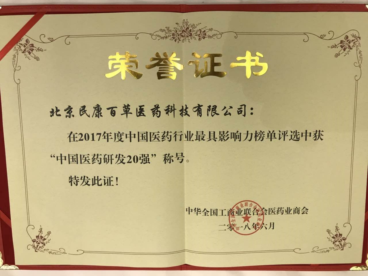 全國工商聯(lián)醫(yī)藥業(yè)商會致力于打造中國醫(yī)藥行業(yè)最具權威性、影響力最大、規(guī)模最大的年度品牌盛會,已成功舉辦了四屆“中國醫(yī)藥行業(yè)最具影響力榜單發(fā)布會”,榜單具有公正性、公平性、公信力和代表性。民康百草醫(yī)藥榮登“中國醫(yī)藥研發(fā)20強”榜單。